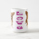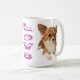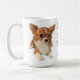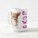 Brighten your mornings with a cute chihuahua puppy dog. This fun coffee mug features an image of a long hair Chihuahua puppy dog highlighted against a crisp white background with Love printed in a bold purple heart font.