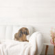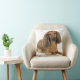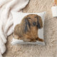 Long Haired dog, the beloved Dachshund, is placed on a variety of toss pillows and the ideal gift for fans of the Dachshund dog breed.