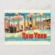 Colourfully illustrated, vintage postcard greeting from Long Island, New York. It's an old postcard repurposed now on a new postcard to use for any occasion.
