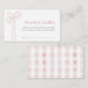 This coquette & cute girl's baby shower diaper raffle ticket enclosure card features a long pink bow/ribbon. The reverse side features a white background with pink gingham plaids/checks. Personalize it for your needs. You can find matching products at my store.