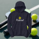 Long sleeve pickleball sport hoodie for men. Custom tennis clothing with yellow ball logo and script text. Cool sports Birthday party gift idea for fan, player, coach, dad, teenager, husband, father, uncle, grandpa, boyfriend etc. Change ball logo into any colour. Also great for other activities. Personalise with your own funny quote or team name. Available in navy blue and other colours. Athletic sweatshirt for him. Christmas gift ideas for guys.