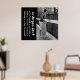 This is a cool black and white photo of a teen boy holding his longboard on a old metal bridge with a quote about having a positive attitude and the independence to overcome life's obstacles.