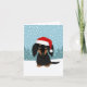 Longhaired Black and Tan Dachshund Santa Christmas Holiday Card