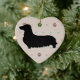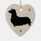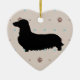 For dog parents, we love to include our furry kids in the holiday celebration or family event. This ornament with a silhouette of a Longhaired Dachshund is the perfect way to commemorate your beloved dog. Customise the back with your dog's name, titles, or your favourite saying. With a pattern of tan paw prints and blue dots on a beige background, this ornament is sure to please any dog lover or pet owner.