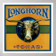 Vintage fruit crate label for Longhorn Brand Texas citrus fruits.