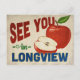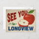 A charming Longview Texas vintage travel postcard featuring a lovely red apple, along with fun retro style text that says, "See you in Longview"