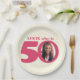 Celebrate a 50th Birthday with these fun look who is 50 photo paper plates. Personalise these age party disposable paper plates with a photograph of the birthday girl. Great idea for adding some fun to a birthday party. Can be used to show baby photos or other fun or embarrassing photos over your birthday girls thirty years by order several packs with different photos on. Design by Sarah Trett.