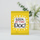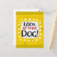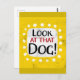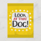 "Look At That Dog!" is a fun text design with a white accent shape surrounded by white whimsical textured dots.