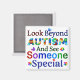 Inspirational quote of “Look Beyond AUTISM And See Someone Special” with colourful Autism puzzles to support autistic children and their families.