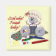 This magnet design features a teddy bear in dress and hat with ABC on the bottoms of her feet. Along the side of her is a drawing she has done of a tree and flowers and the sun. Crayons in red, blue and green lay in front of her. Printed on the left side is the sentence, 'look what I made today!' What a great way for your child to show off their new artwork!