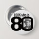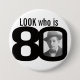 Look who is 80 photo black and white button/badge 7.5 cm round badge