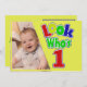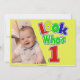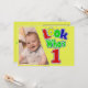 Celebrate your child's 1st birthday with this colourful "look who's 1" invitation. Customise text and add your favourite photos.