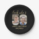 Look who's 50! Add an elegant personalised touch to 50th birthday party decorations for him or her with stylish custom photo round paper plates. Pictures and wording on this template are simple to customise (IMAGE PLACEMENT TIP: An easy way to position a photo exactly how you want is to crop it before uploading to the Zazzle website.) The black and gold design features two pictures of your choice, modern handwritten style script calligraphy and classic vintage art deco typography. Please note that gold is printed colour, not metallic foil. The gender neutral design is also suitable for either a man or a woman. Happy Fiftieth Birthday!