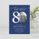 Celebrate your milestone 80th birthday with timeless style using this navy blue Look Who’s 80 invitation! Featuring a sleek, modern design this blue invitation is perfect for those who prefer simplicity with a touch of elegance. Fully customizable, you can easily add your party details to create a personal and sophisticated invite that sets the tone for a stylish 80th birthday celebration.