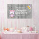 Add this personal touch to your baby shower honouring the Mother To Be. Welcome your guests with a personalised banner. It has a light grey wood grain background,There's a colourful butterfly in the top corner and an adorable purple owl on the bottom. Personalise by adding the Mum to be's name and a date. Check out our many other matching products in this collection to make your celebration complete and customisable.