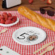 Celebrate your 50th birthday with a dose of humour! Our paper plates not only feature a fun phrase 'Look who's 50' but also add a personalised touch with your photo replacing the zero. Framed by a quirky doodley border and accompanied by an easy-to-edit text template, these plates are sure to be the talk of your party!