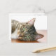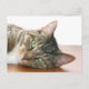Brown with white tabby cat and green eyes looking at you photo postcard