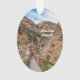 Oval ornament souvenir featuring a view looking down one of the bridge walkways at the top of Seven Falls in Colorado Springs, Colorado. Looking for more prints or products? Feel free to visit my store: http://www.zazzle.com/timelessmomentsphtgy