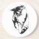 Protect your surfaces with this looking down tabby cat monochrome coaster. The detailed fur and elegant lines make it a conversation piece.