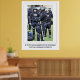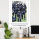 Several police in full riot gear and the words below "If you're looking for trouble you'll probably find it".