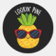 Looking Pine Funny Pineapple Pun Dark BG Classic Round Sticker