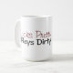 A cup for a naughty girl. Design features the quote, "Looks pretty, plays dirty." with a red lipstick kiss.