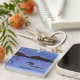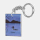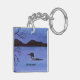 A watercolor painting of a loon on an evening lake adorns this customisable keychain!