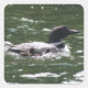 Two baby loons with an adult loon on Rainbow Lake in north-central Maine.