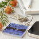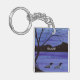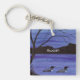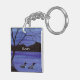A watercolor painting of two loons on an evening lake adorns this customisable keychain!