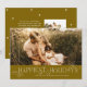 Modern swirls make Happiest Holidays fun on this photo holiday card. Share the cheer with friends and family with one photo on the front and a smaller one on the back side. There is also space on the back for a longer message, along with some retro style stars that match the front type elements. Change the background colour to complement your photos. This card is also available as a digital download.