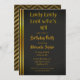 You will love this black and gold theme with gold stripes and typography textures. Black and gold Chevron on the back. Great for a 40th birthday party!