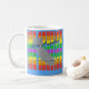 The coffee mug design saying "The City of Angels" and "Los Angeles" is colored blue. It makes it ideal for either coffee or tea in the mornings. It is microwave and dishwasher safe.