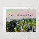 The Los Angeles skyline necessarily includes a lot of palm trees. This is done in a retro style with a fade-to-pink sky. The picture was taken from my hotel room balcony.