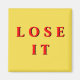 Custom Magnet to put on your frig. when you're dieting, reads "lose it". Change the background colour/square or circle.