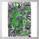 in the centre there is a alien smiling, his smile actually says amo( to love) below that it says losing then in the bottom right corner it says your and mind on the right side so losing your mind. In the top it says insanity the I is a sailboat the N is a snake eating the sail boat