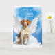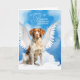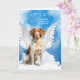 This beautiful Brittany Spaniel dog has a pair of angel wings and a halo, and floats along on a fluffy white cloud against a lovely blue sky, which pairs with your message of sympathy and condolence for the loss of a dog.