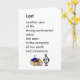 Design is brilliant - there is a male version and a female version of this cartoon and I bought both! You can personalize all the type on this card. I love these cartoon cards from Le Grand Art. I will be coming back to buy more. So pleased with the quality. Great colour and good quality cardstock.
