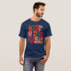 I give wanted to give this a 4 instead of a 5 because these Basic DARK T0shirts run unexpectedly SLIM or Narrow. Which is great if you do not have a potbelly, but I have a paunch. It isn't the shirt's fault that I've got a beer belly. The design and shirt itself is a quality cotton shirt. The color is more of a deep purple, but still a very pretty color. The Basic DARK T-shirts run a bit SLIMMER than the Basic Ts. The neck is a fraction narrower (or seems to be narrower) also. I'm a paunchy middle-aged woman and my neck is 12 inches (31cm) thick and the neckline fell about the same as in the photo of the man, and I had the desire to tug it a bit. So if you're a thick necked man or like loose shirts, be aware these are slimmer shirts. Once I get rid of my lockdown paunch it'll look great. The shirt washed well in cold water with no apparent bleeding. We don't have a dryer, so it hung dry. Did not shrink. Love the colors and the design. The design looks smaller on my shirt than it does on the model on-line. But still, it looks good on the shirt. The printing looks as it does on the model, just the size seems fractionally smaller. Washed garment in cold water, hung dry and design appeared unaffected.