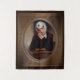 This beautiful religious portrait, depicts a young girl kneeling a pew inside of a church deep in thought as she looks off into the distance.