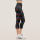 There are lots of colorful bicycles in the pattern on these cute capri leggings. The images are in bright red, blue, green, and purple, and placed on a dramatic black background. Perfect for the bicyclist!