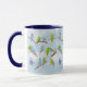 This Mug features many cute parakeets of all colours on pale blue background - digital watercolor painting. For all bird lovers! Beautiful gift idea for anyone!