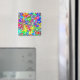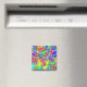 Colorful pattern of dog paw prints in many sizes, angles and colors.