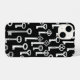 This graphic features a pattern of old fashioned skeleton keys in a gothic black and white colour scheme..