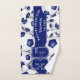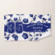 This team spirit towel for soccer players features varied size blue & white team colours soccer balls turned every which way on a white background with prominent jersey number in blue overlying a full length blue colour strip, upon which you can also customise the athlete's name, team name & mascot name in white - by katz_d_zynes