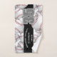 This unique towel for a softball or baseball player features varied size, realistic, clean white softballs turned every which way on a white background and prominent jersey number in grey overlying a bold, full length black colour strip, upon which you can also personalise the athlete's name, team name & mascot name - the black and grey personalisation elements can be customised to match her team's colours or favourite colours - by katz_d_zynes