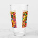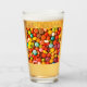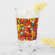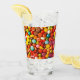 A drinking glass that is designed with hard candy sweets in mind, the art work was created digitally using a computer, on the glass are all kinds and shapes of hard candy.