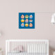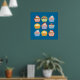 Poster featuring design with lots of vector art cupcakes on blue background.