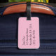 This was purchased as part of a 40th Birthday present for my nephew who is going to Vegas. It is made of high quality, very study and we decided only to put his name on the back of the tag, but you can add a full address if you so wish.
