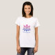 This t-shirt has a blue-pink coloured lotus flower design, and the caption "PEACE AND LOVE" in co-ordinating blue. Edit this text for your own preferred wording. Relax, breathe, comfort.
