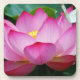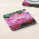 Colourful hard plastic set of coasters with a pink lotus flower with a butterfly.